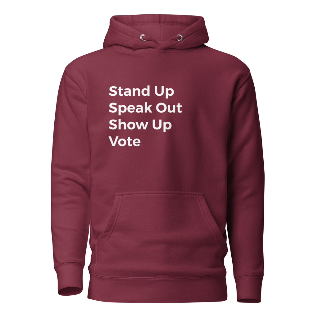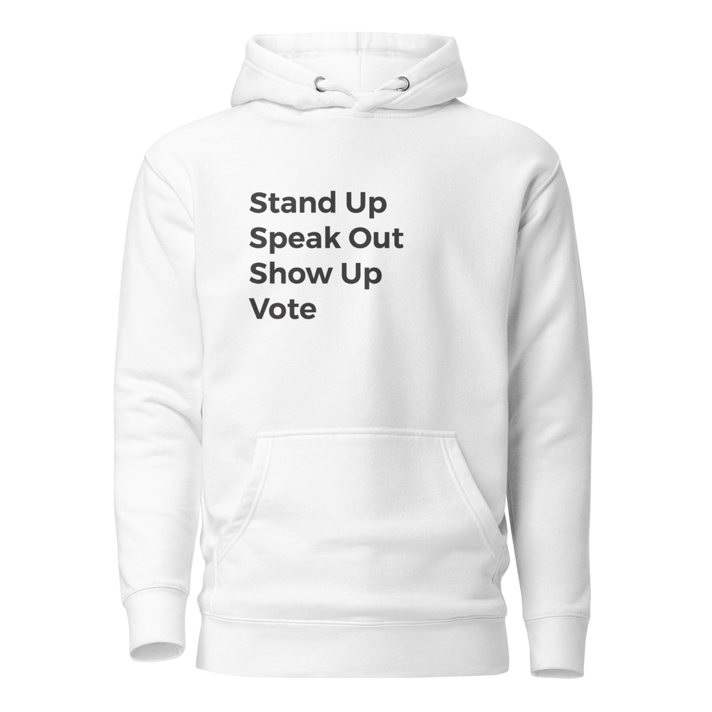 The Stand Up Speak Out Vote Hoodie is about participation in every form.